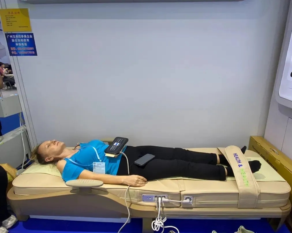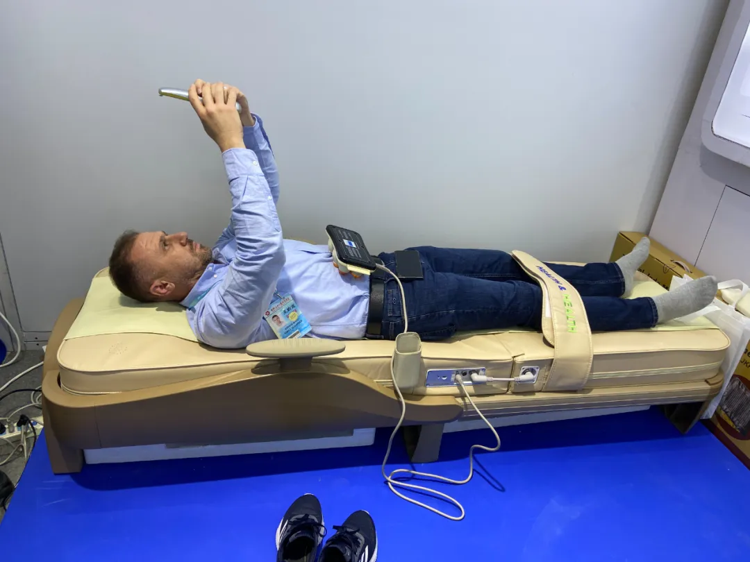一位德國采購商在體驗溫熱理療儀后,感嘆道:“哇!后背像卸了十斤沙袋,渾身都舒展開了!中國中醫+智能科技,這個組合太神奇了!”