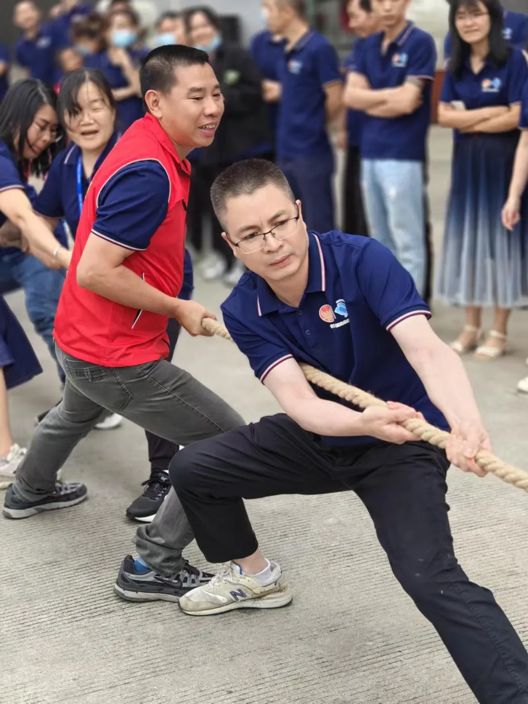活動現場,各參賽隊伍以部門為單位集結,黨員同志帶頭沖鋒,用“一二、一二”的口號凝聚力量。比賽中,隊員們咬緊牙關、全力以赴,雙手緊握繩索、雙腳穩扎地面,展現出“心往一處想、勁往一處使”的協作精神。場邊觀眾吶喊助威,掌聲與歡呼聲此起彼伏,將比賽氛圍推向高潮。
